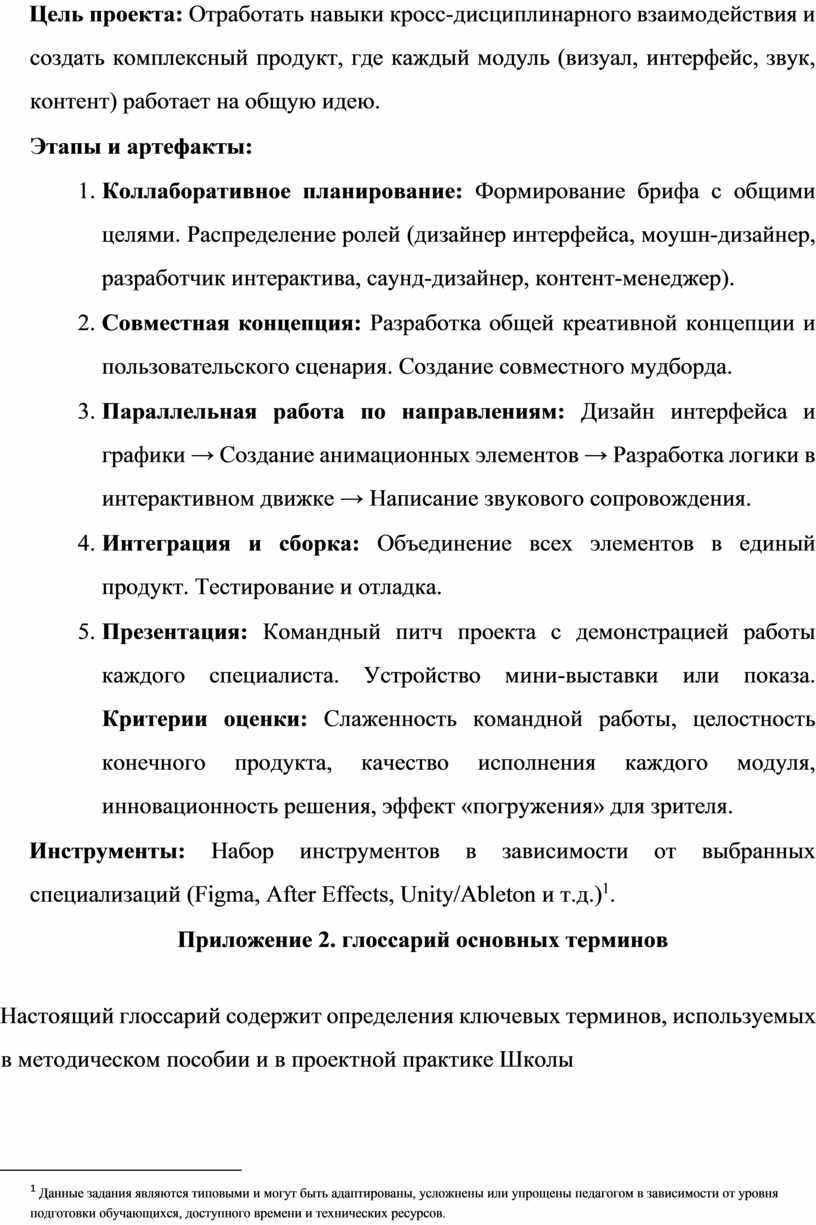 [12] Глоссарий является открытым и может дополняться новыми терминами в соответствии с развитием технологий и образовательных практик в сфере креативных индустрий.