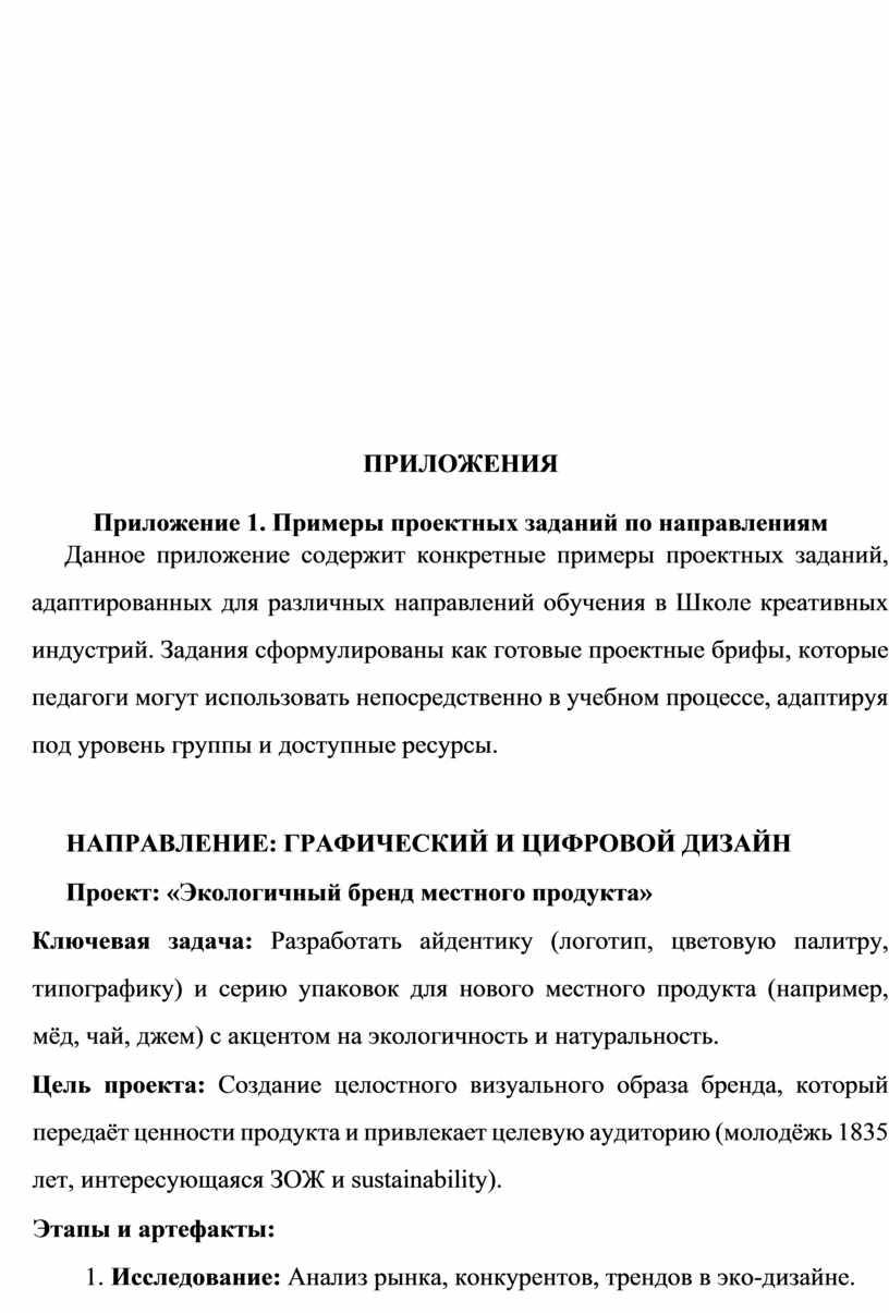 ПРИЛОЖЕНИЕ 1. ПРИМЕРЫ ПРОЕКТНЫХ ЗАДАНИЙ ПО НАПРАВЛЕНИЯМ