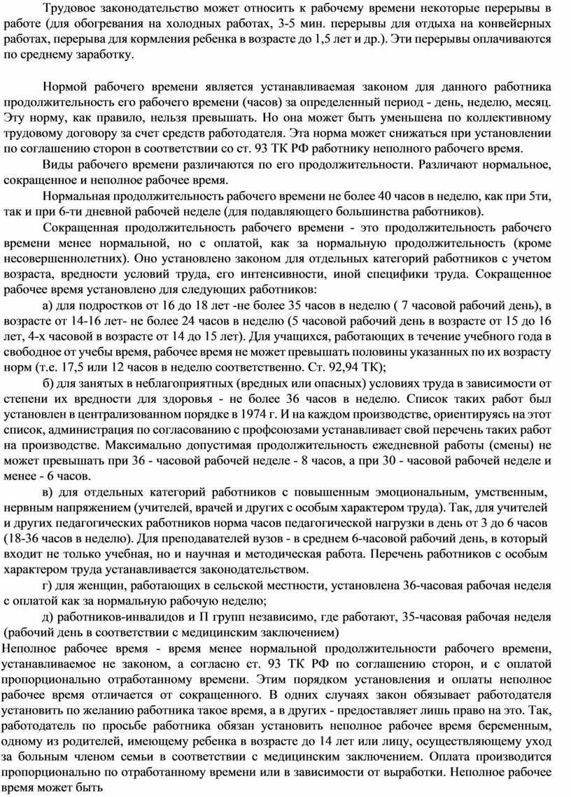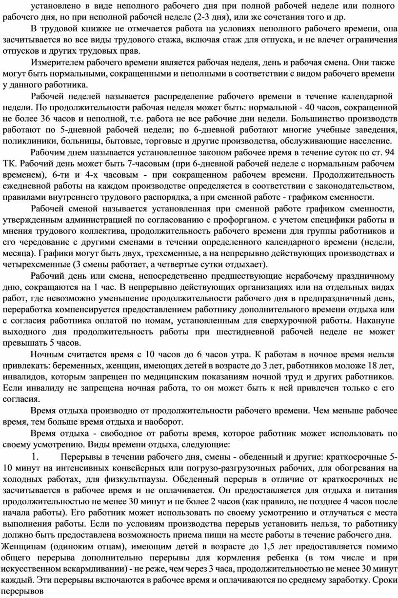 положений трудового права о рабочем времени и времени отдыха в деятельности