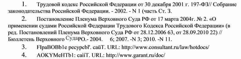 2. Постановление Пленума Верховного Суда РФ от 17 марта 2004г. № 2. «О применении судами Российской Федерации Трудового Кодекса Российской Федерации» (в ред. Постановлений Пленума Верховного Суда РФ от 28.12.2006 63, от 28.09.2010 N 22) // Бюллетень Верховного суда РФ.- 2004. - № 62007. - N З; 2010. - ТЧ 11.