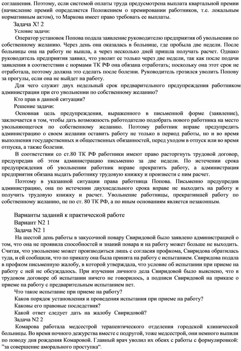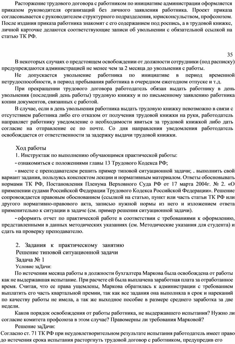 Практическое занятие — это своеобразная форма связи теории с практикой, которая служит для закрепления знаний путем вовлечения обучающихся в решение разного рода учебнопознавательных задач, вырабатывает умение пользоваться нормативным материалом (Трудовым кодексом РФ и др.). Практические занятия позволят преподавателю достичь следующих задач: