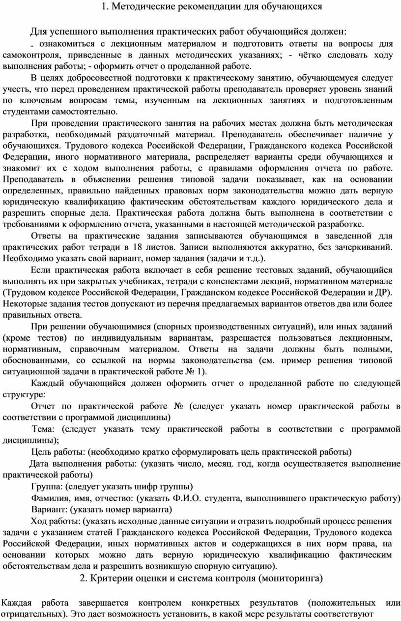 Предложенные методические указания помогут обучающимся организовать и выполнить практические задания по дисциплине, закрепить, расширить теоретические знания, освоить практические навыки работы с нормативно-правовыми актами, позволят сделать самостоятельную работу более эффективной.