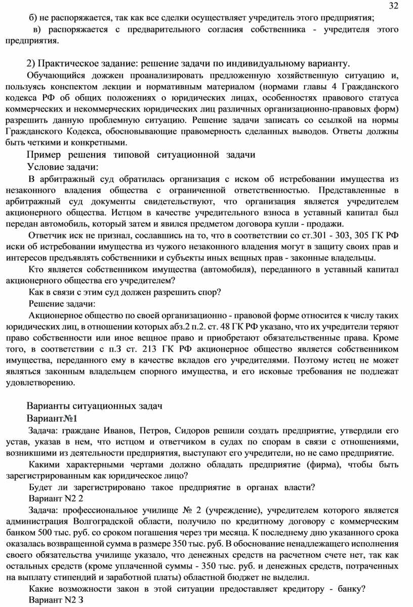 1) научить обучающихся анализировать жизненные (производственные) ситуации и на основе норм трудового, гражданского, гражданско - процессуального законодательства разрешать спорные вопросы. Использование норм законодательства предполагает правильный выбор института соответствующей отрасли права, регулирующего то или иное спорное правоотношение, нормы права из данного института, верное толкование нормы и применение ее правила к определенной спорной ситуации.