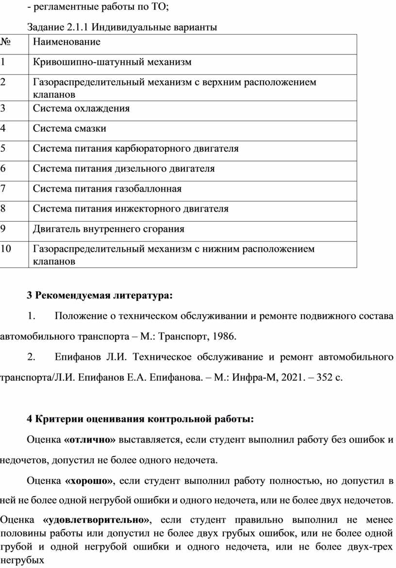 2. Епифанов Л.И. Техническое обслуживание и ремонт автомобильного транспорта/Л.И. Епифанов Е.А. Епифанова. – М.: Инфра-М, 2021. – 352 с.