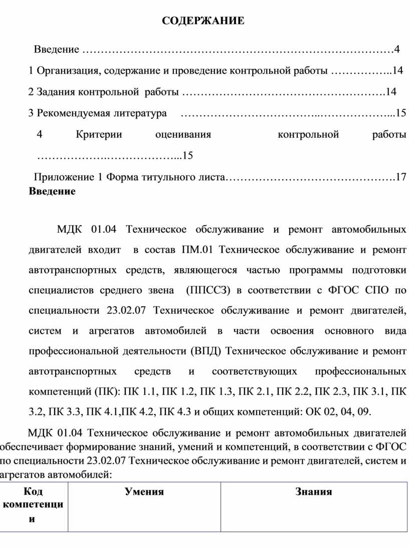 МДК 01.04 Техническое обслуживание и ремонт автомобильных двигателей обеспечивает формирование знаний, умений и компетенций, в соответствии с ФГОС по специальности 23.02.07 Техническое обслуживание и ремонт двигателей, систем и агрегатов автомобилей: