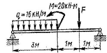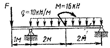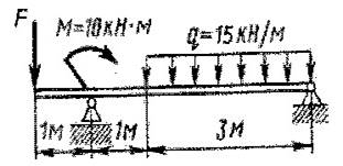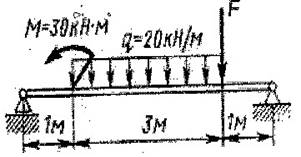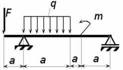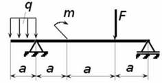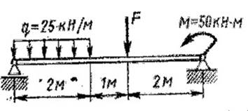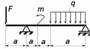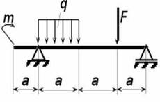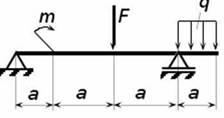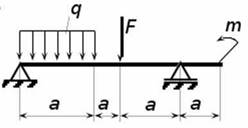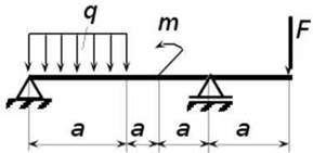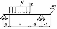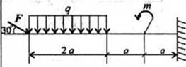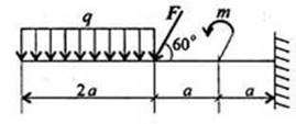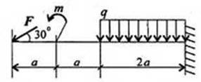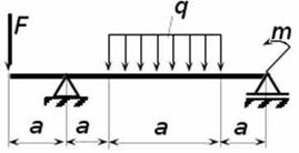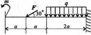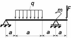 a=2 м, q=50 кн/м, F=100 кН, m= 200 кНхМ
