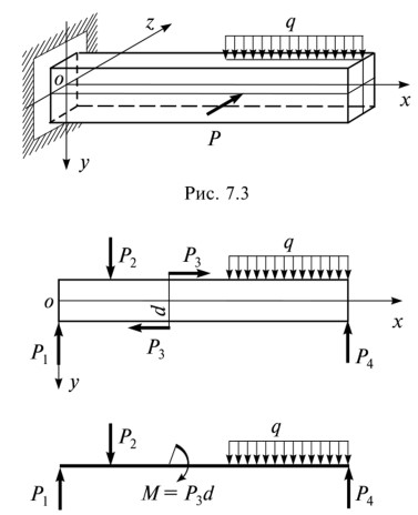В общем случае, когда нагрузки расположены в разных плоскостях (рис. 3), изгиб называется пространственным. Изогнутая ось стержня в этом случае является пространственной кривой.