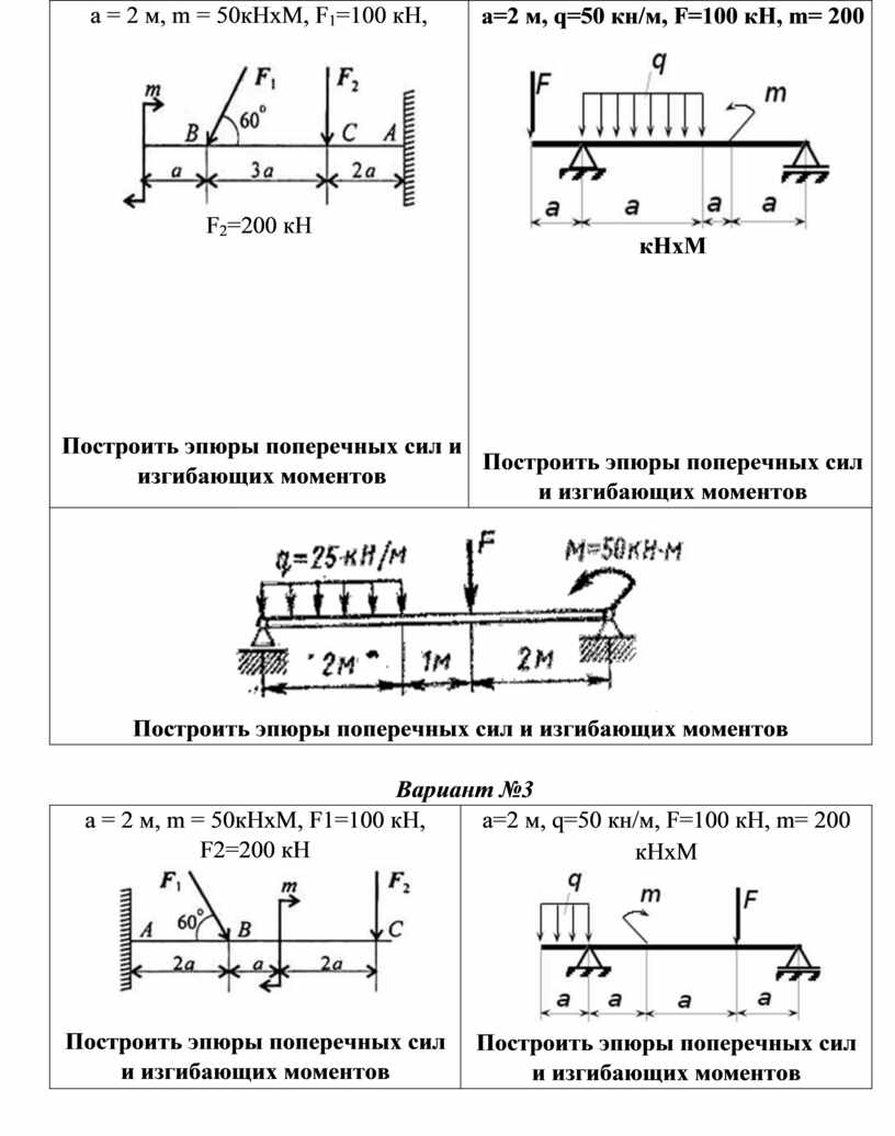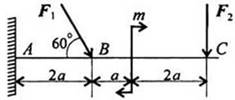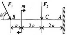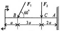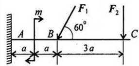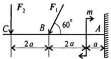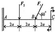 a = 2 м, m = 50кНхМ, F1=100 кН,
