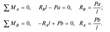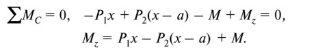 Приравнивая к нулю сумму моментов всех сил, приложенных к левой части балки относительно центра тяжести поперечного сечения, получим: