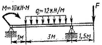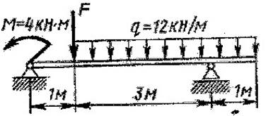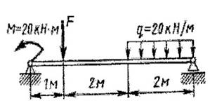 a = 2 м, m = 50кНхМ, F1=100 кН, F2=200 кН,q=120кн/М
