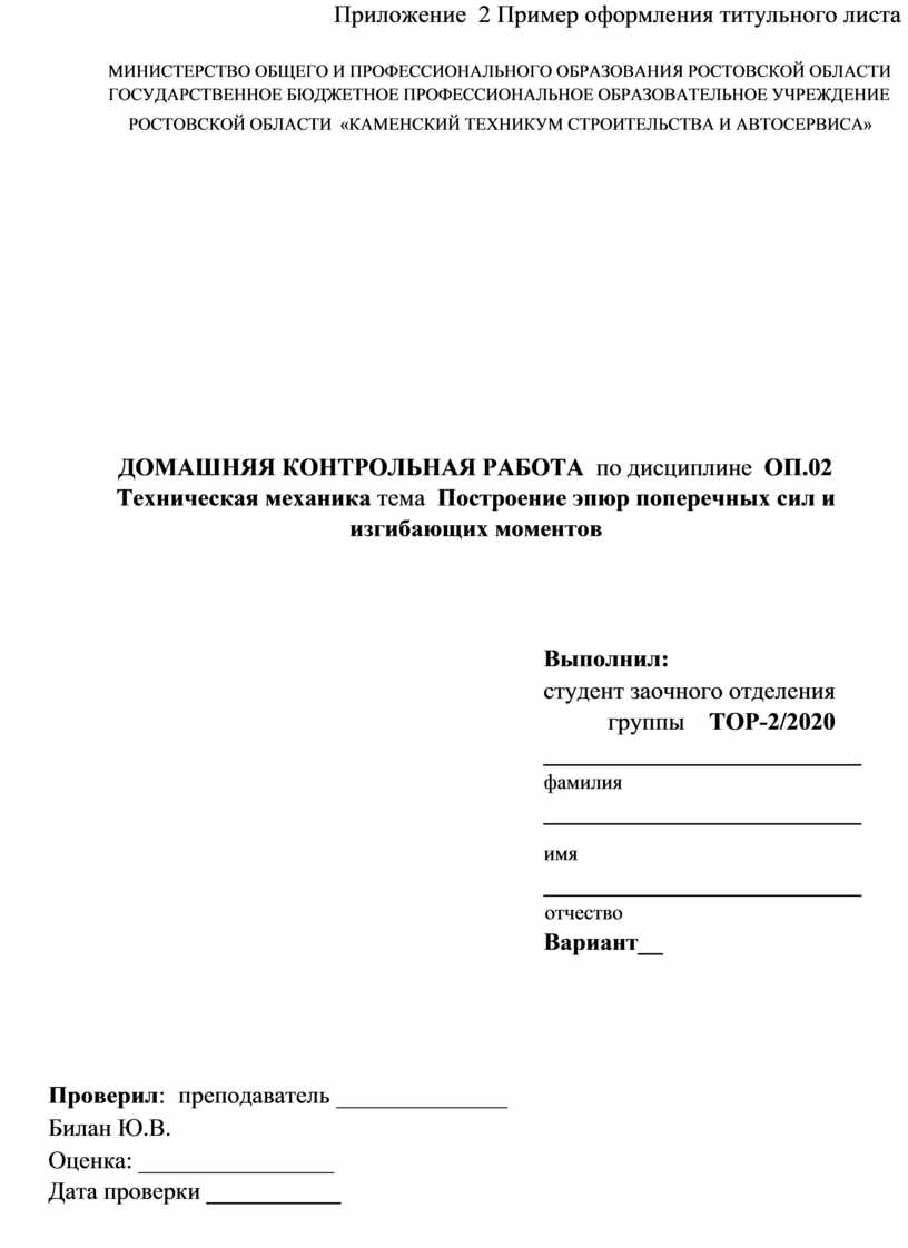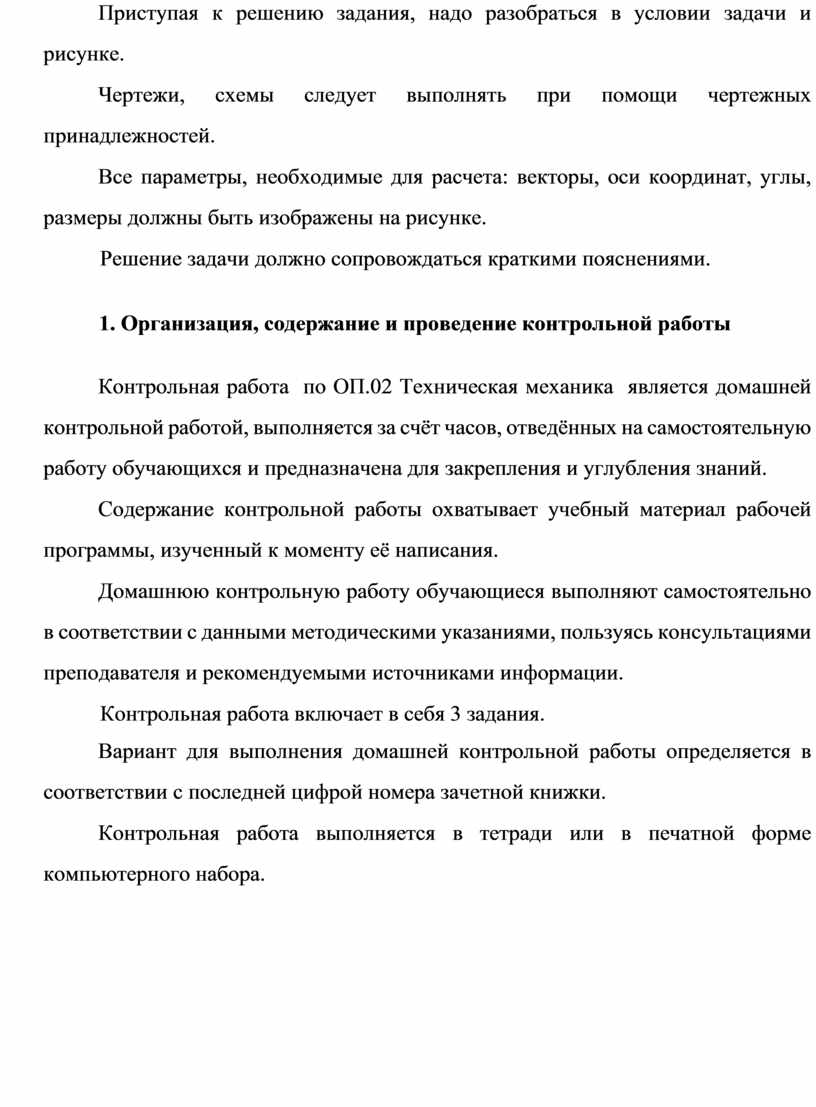 Контрольная работа по ОП.02 Техническая механика является домашней контрольной работой, выполняется за счёт часов, отведённых на самостоятельную работу обучающихся и предназначена для закрепления и углубления знаний.