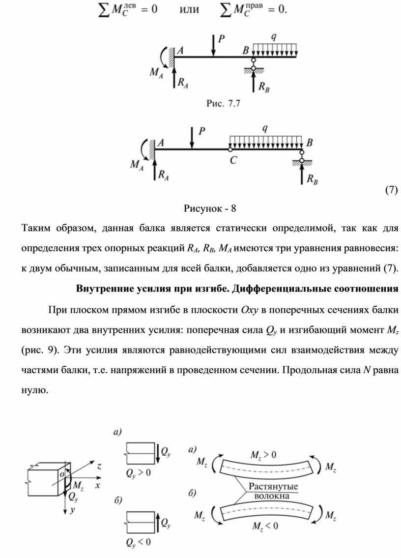 к двум обычным, записанным для всей балки, добавляется одно из уравнений (7). Внутренние усилия при изгибе. Дифференциальные соотношения