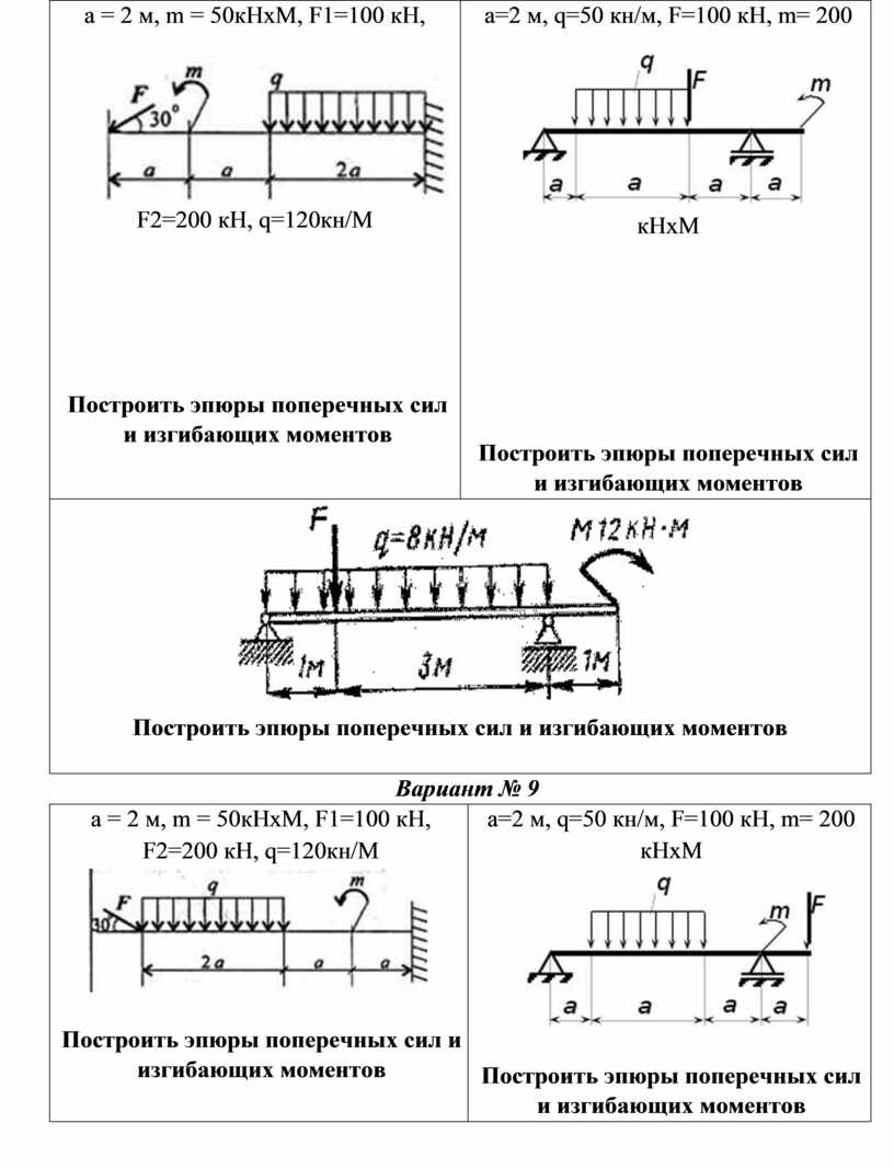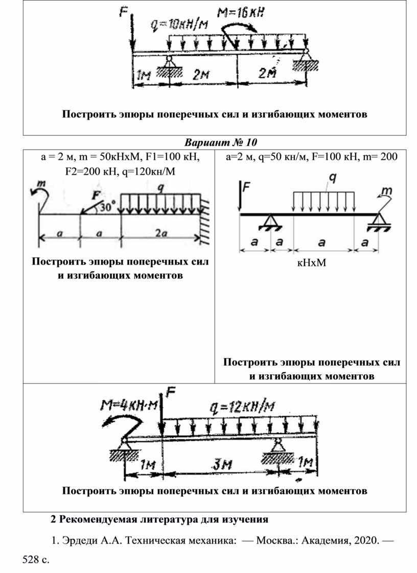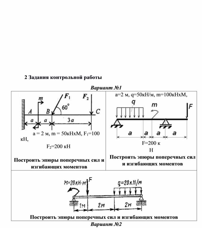 ДОМАШНЯЯ КОНТРОЛЬНАЯ РАБОТА по дисциплине ОП.02 Техническая механика тема Построение эпюр поперечных сил и изгибающих моментов