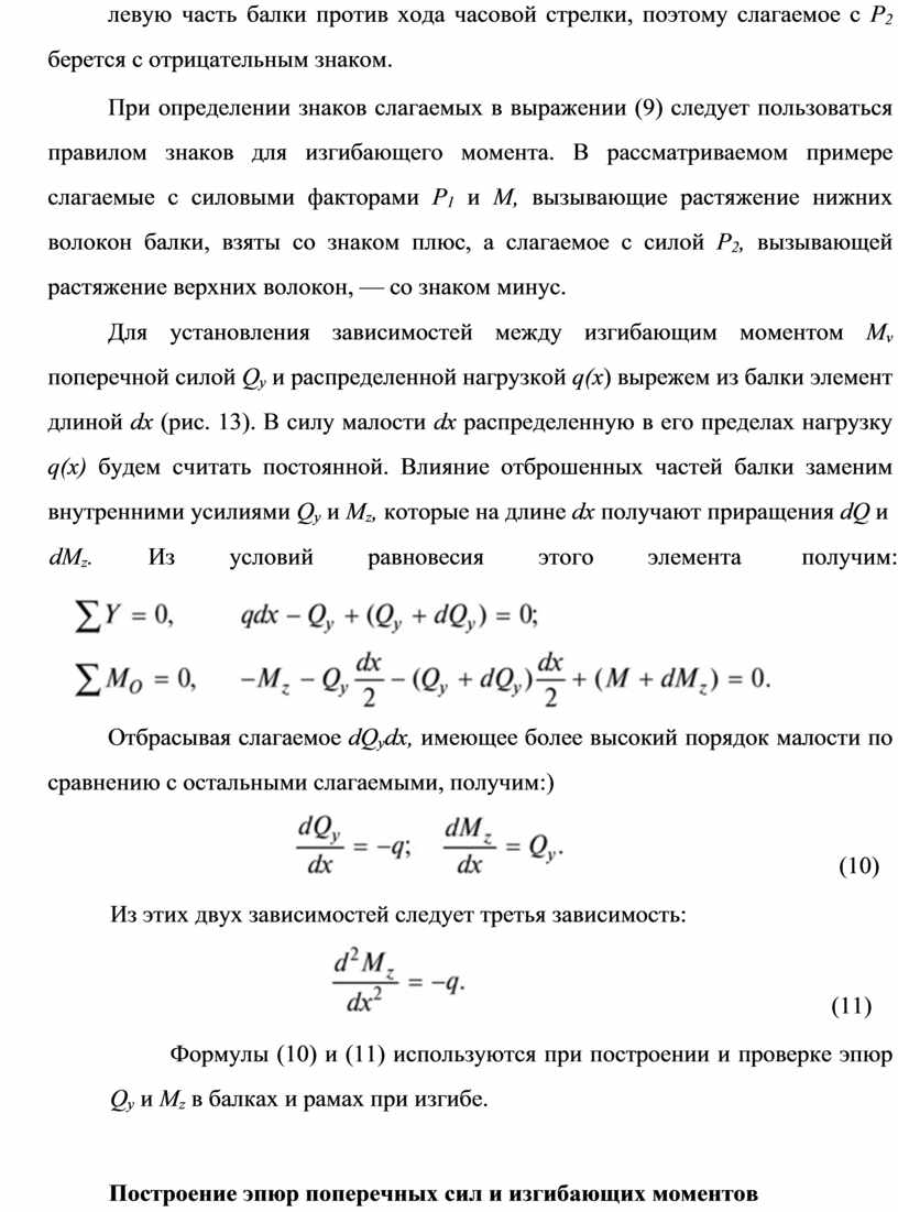 Формулы (10) и (11) используются при построении и проверке эпюр Qy и Mz в балках и рамах при изгибе.