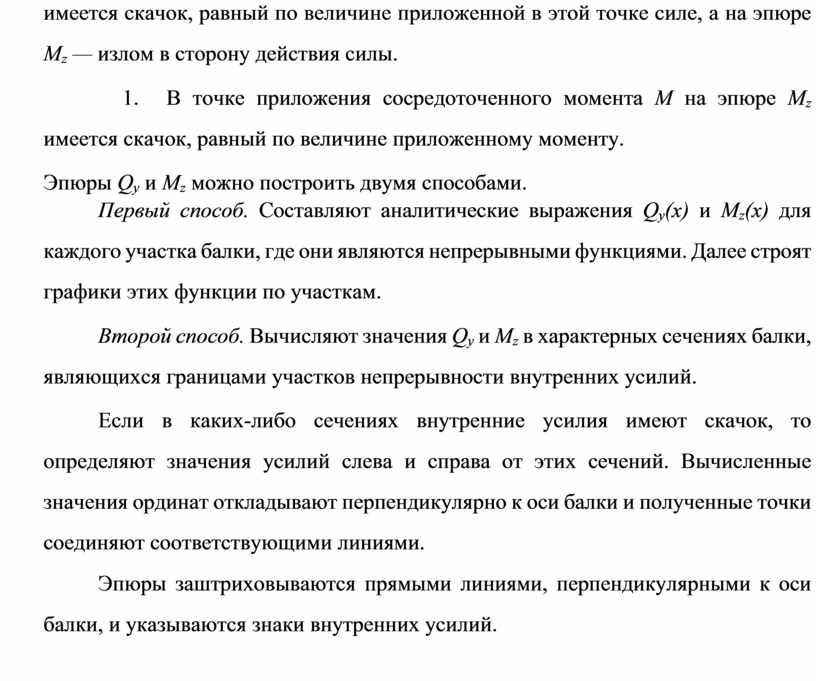1. На участках балки, где отсутствует распределенная нагрузка q, поперечная сила Qy имеет постоянное значение, а изгибающий момент Mz изменяется по линейному закону.