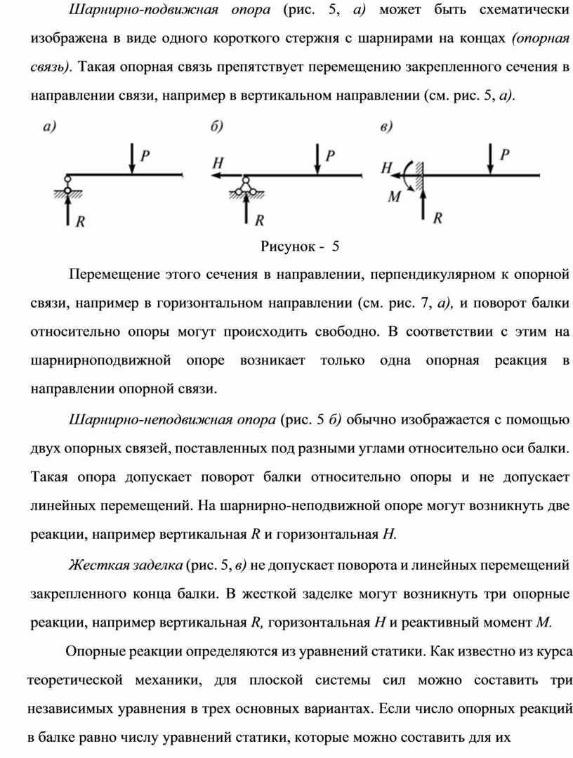 Шарнирно-подвижная опора (рис. 5, а) может быть схематически изображена в виде одного короткого стержня с шарнирами на концах (опорная связь). Такая опорная связь препятствует перемещению закрепленного сечения в направлении связи, например в вертикальном направлении (см. рис. 5, а).