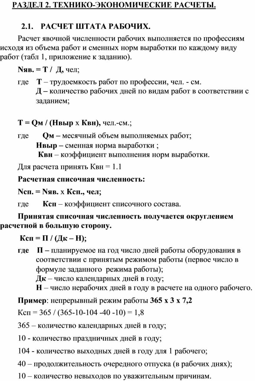 РАЗДЕЛ 2. ТЕХНИКО-ЭКОНОМИЧЕСКИЕ РАСЧЕТЫ.