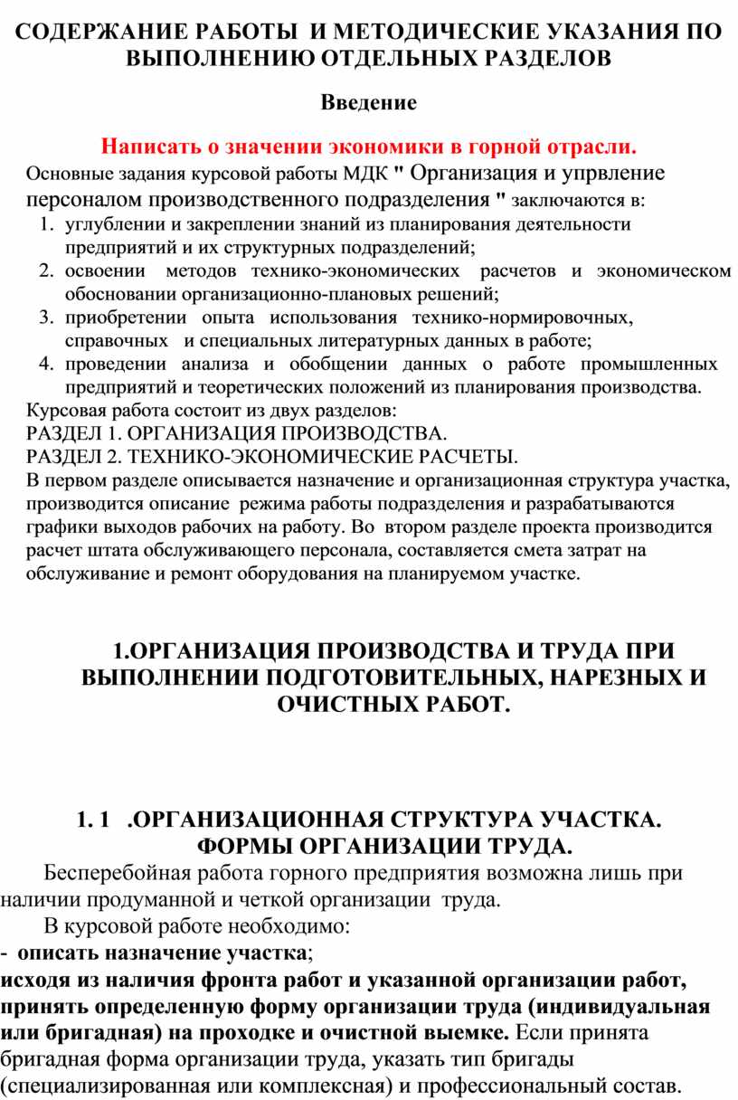 1.ОРГАНИЗАЦИЯ ПРОИЗВОДСТВА И ТРУДА ПРИ ВЫПОЛНЕНИИ ПОДГОТОВИТЕЛЬНЫХ, НАРЕЗНЫХ И ОЧИСТНЫХ РАБОТ.