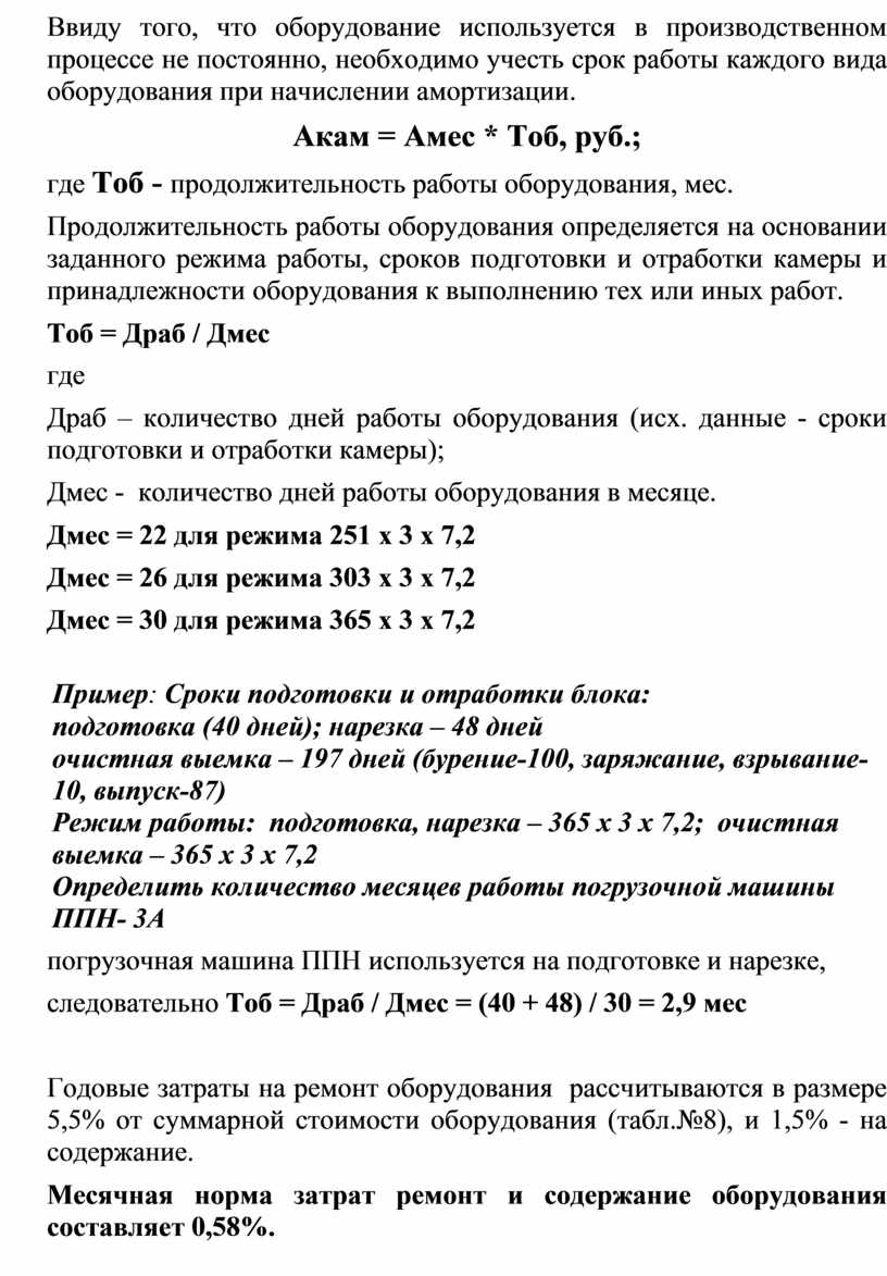 В первом разделе описывается назначение и организационная структура участка, производится описание режима работы подразделения и разрабатываются графики выходов рабочих на работу. Во втором разделе проекта производится расчет штата обслуживающего персонала, составляется смета затрат на обслуживание и ремонт оборудования на планируемом участке.