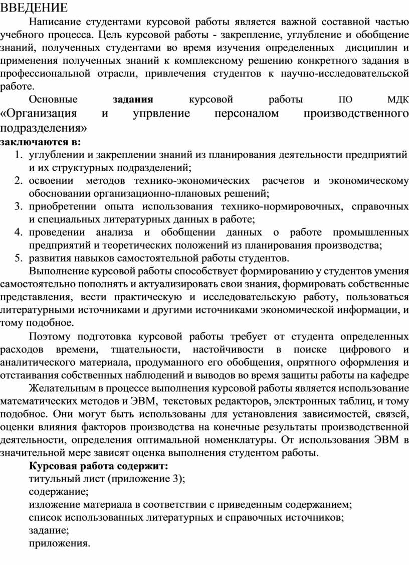 Основные задания курсовой работы МДК " Организация и упрвление персоналом производственного подразделения " заключаются в: