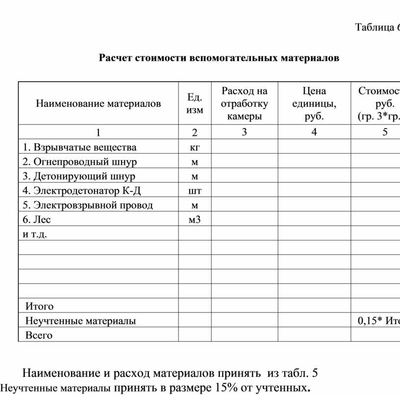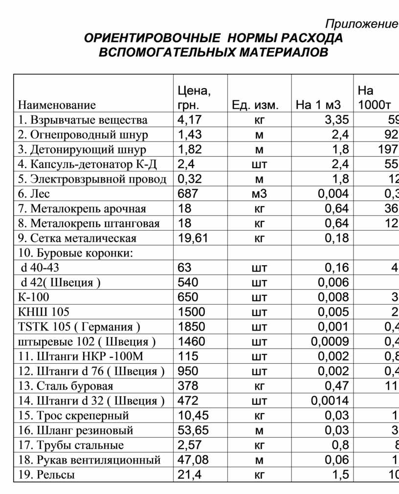 Приложение 6 ОРИЕНТИРОВОЧНЫЕ НОРМЫ расхода ВСПОМОГАТЕЛЬНЫХ МАТЕРИАЛОВ |