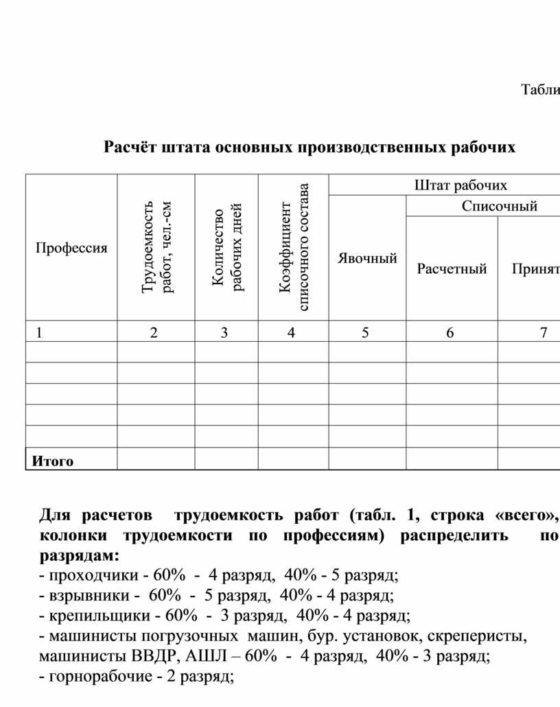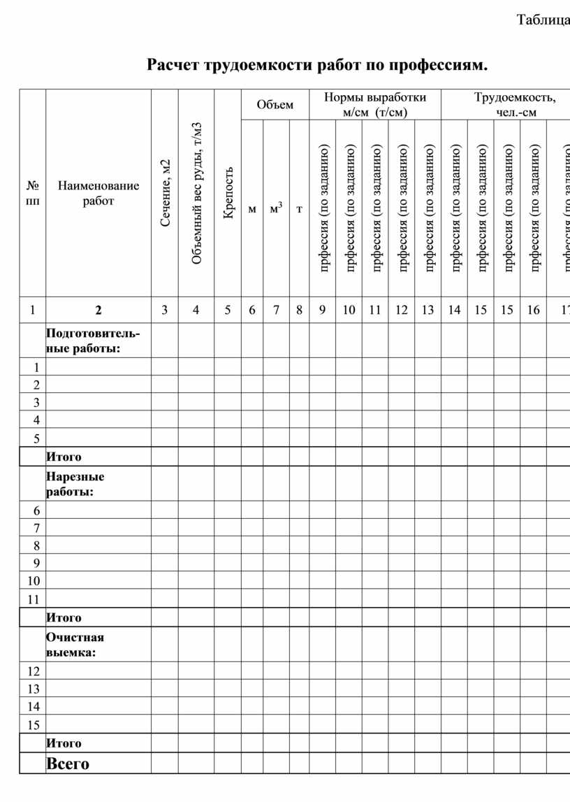 - исходя из наличия фронта работ и указанной организации работ, принять определенную форму организации труда (индивидуальная или бригадная) на проходке и очистной выемке. Если принята бригадная форма организации труда, указать тип бригады (специализированная или комплексная) и профессиональный состав. Доказать, что принятая форма организации труда является наиболее эффективной.