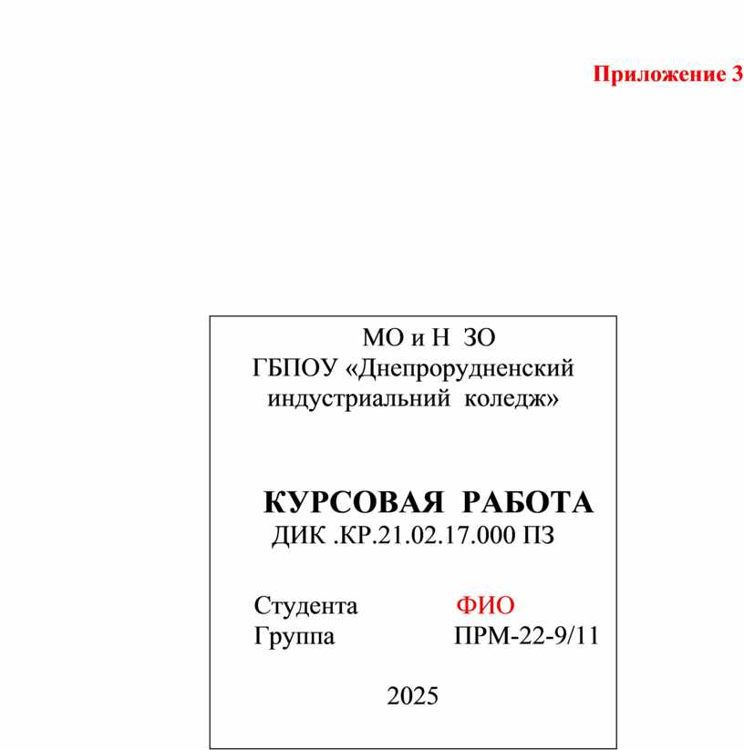 титульный лист (приложение 3);