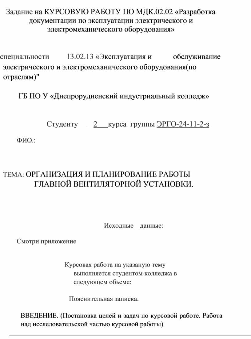 К ЗАДАНИЮ НА КУРСОВУЮ РАБОТУ