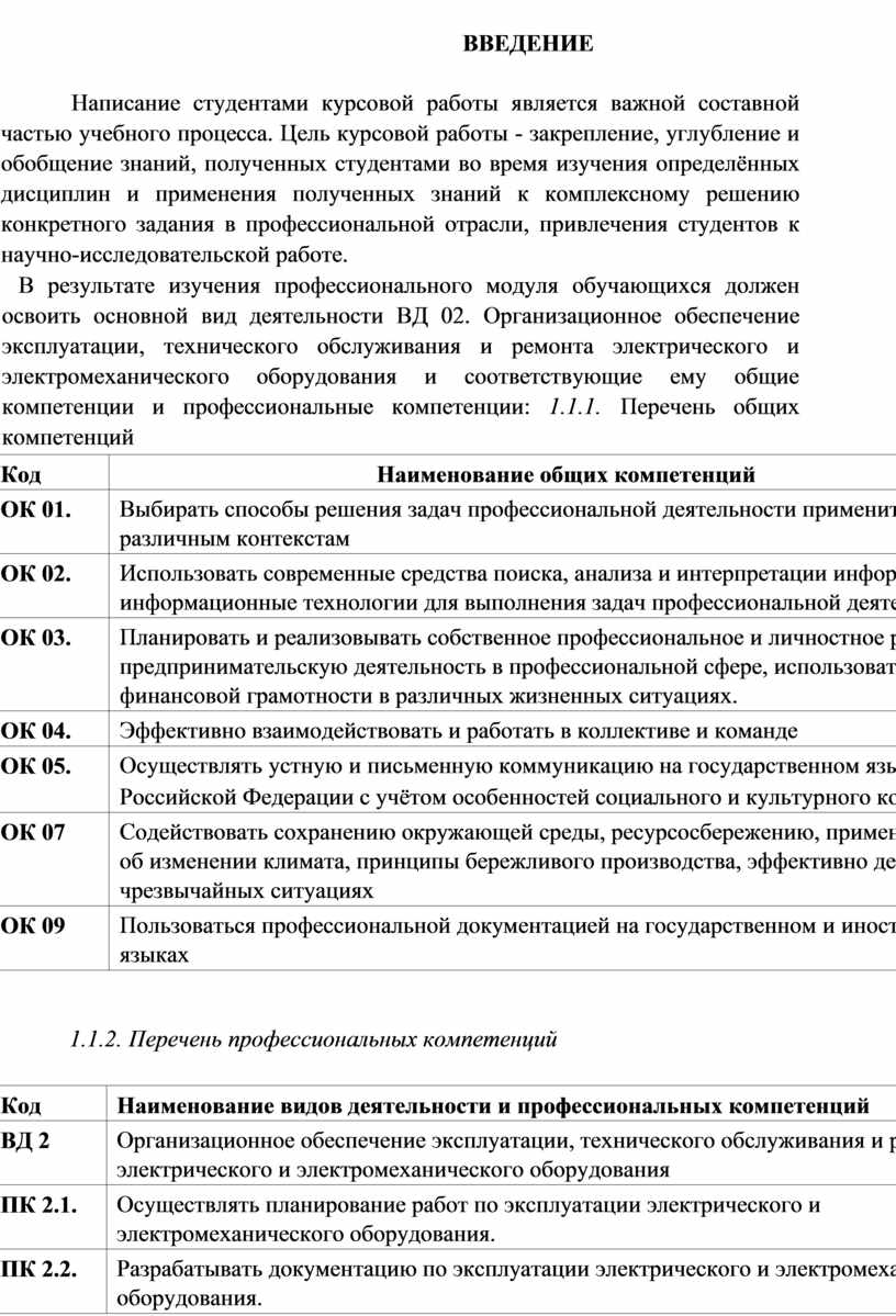 В результате изучения профессионального модуля обучающихся должен освоить основной вид деятельности ВД 02. Организационное обеспечение эксплуатации, технического обслуживания и ремонта электрического и электромеханического оборудования и соответствующие ему общие компетенции и профессиональные компетенции: 1.1.1. Перечень общих компетенций