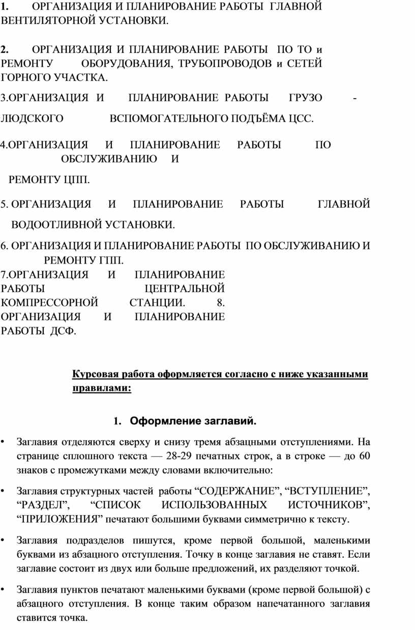 • Заглавия пунктов печатают маленькими буквами (кроме первой большой) с абзацного отступления. В конце таким образом напечатанного заглавия ставится точка.