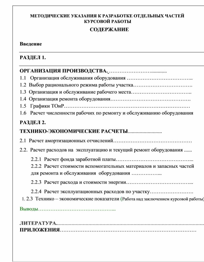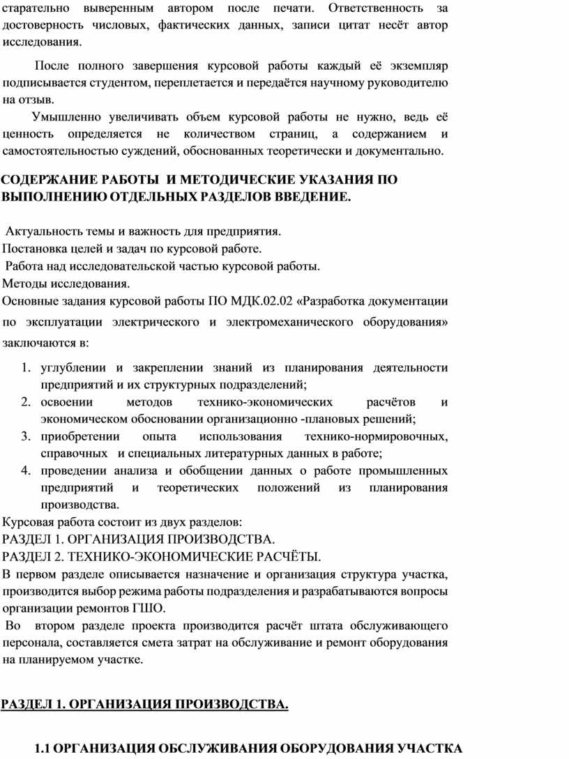 3. Работа над организационно - технологической частью курсового проекта (работы)