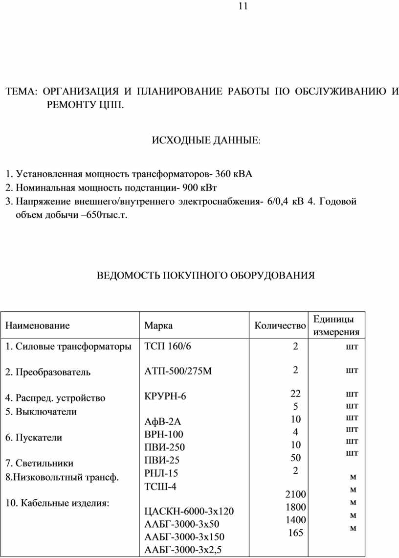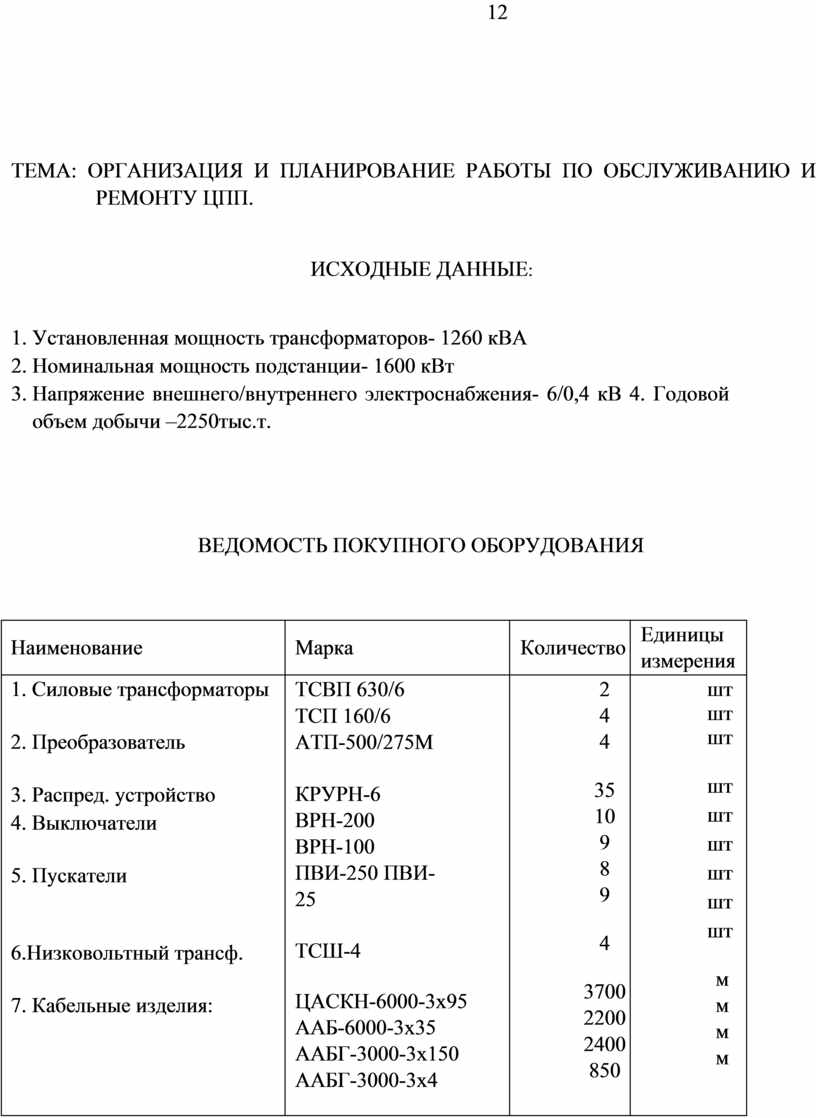 ТДТН 25000/110 ТМ 400/6/0,4 ТМ 25/6 РБА 6-1000-8 КСО-366 ЩО-70-11 ВМД-10М КЗ-110 ОД-110/6 РЛНД 110/6 ТСШ-4 ААБ-3000-3х35 ААБ-3000-3х150 АС-240 ПКН-1500 АТ-120 |