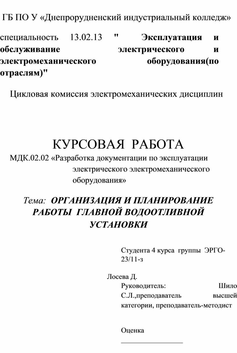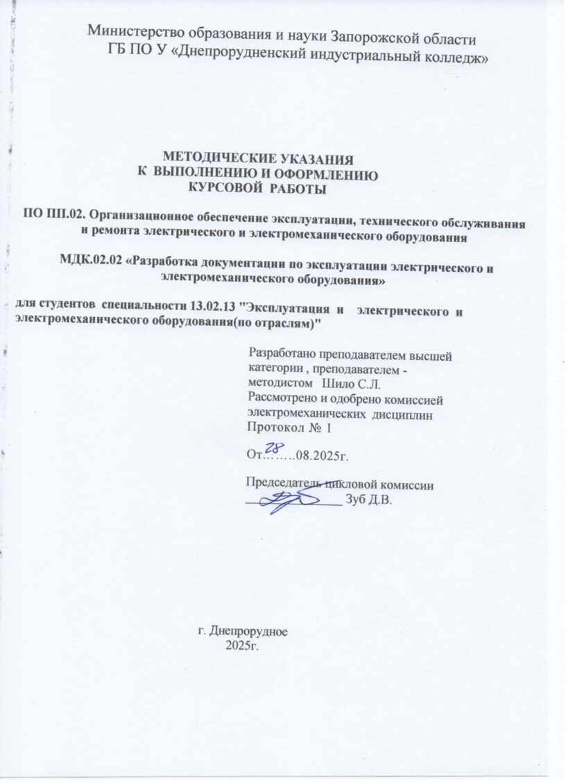 Организационное обеспечение эксплуатации, технического обслуживания и ремонта электрического и электромеханического оборудования |