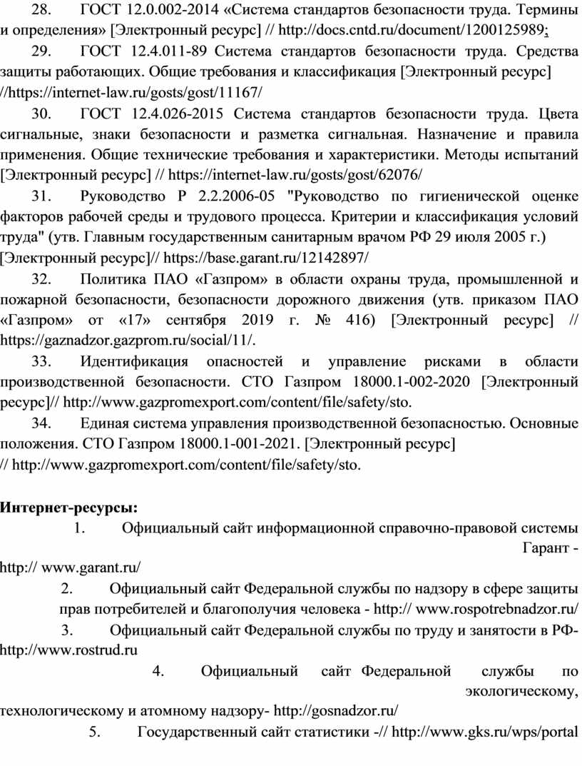 31. ГОСТ 12.0.002-2014 «Система стандартов безопасности труда. Термины и определения» [Электронный ресурс] // http://docs.cntd.ru/document/1200125989;