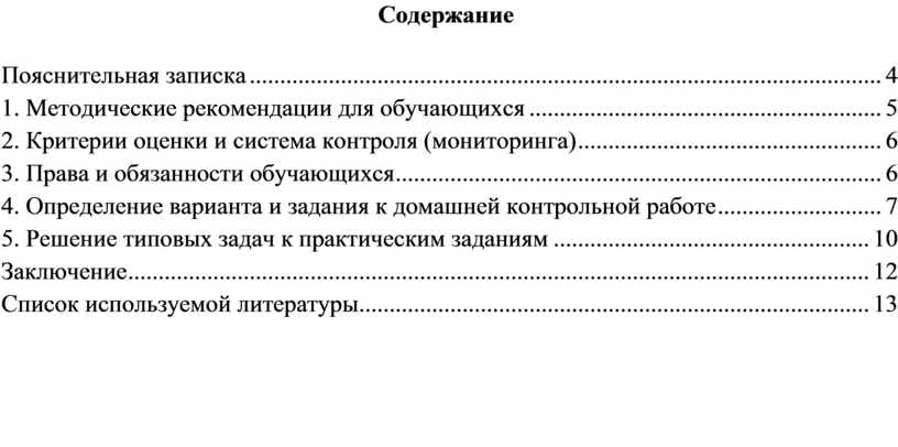 Данная методическая разработка содержит методические рекомендации для обучающихся, критерии оценки и система контроля (мониторинга), права и обязанности обучающихся, определение варианта и задания к домашней контрольной работе, теоретические вопросы и практические задания для контрольной работы. Обучающимся дан необходимый перечень основной, дополнительной литературы, в том числе нормативного материала, Интернетисточников, содержащих достаточные сведения для выполнения контрольных заданий.