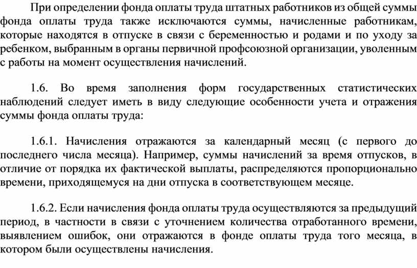 1.6. Во время заполнения форм государственных статистических наблюдений следует иметь в виду следующие особенности учета и отражения суммы фонда оплаты труда: