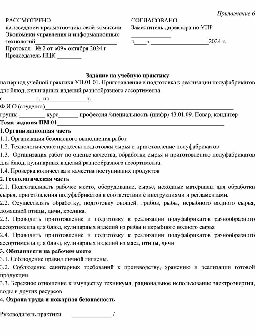 СОГЛАСОВАНО Заместитель директора по УПР _____________ «____» ___________________2024 г.