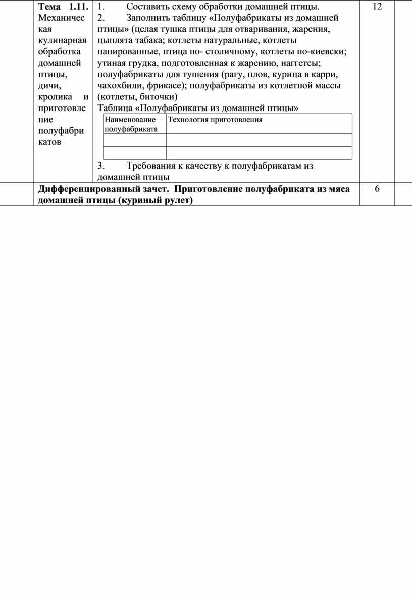ПК 1.4. Проводить приготовление и подготовку к реализации полуфабрикатов разнообразного ассортимента для блюд, кулинарных изделий из мяса, птицы, дичи.