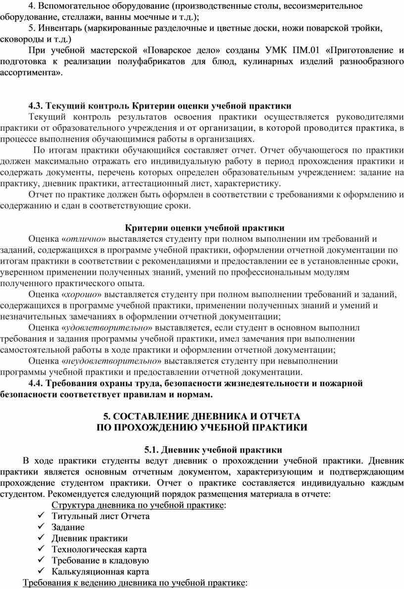 на период учебной практики УП.01.01. Приготовление и подготовка к реализации полуфабрикатов для блюд, кулинарных изделий разнообразного ассортимента