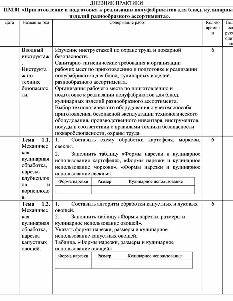 УП.01.01. Приготовление и подготовка к реализации полуфабрикатов для блюд, кулинарных изделий