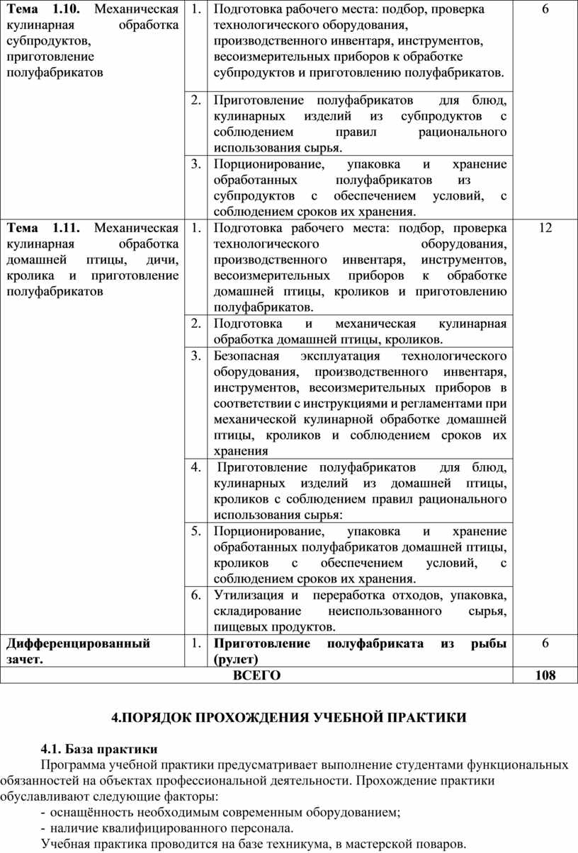 ПК 1.1 Подготавливать рабочее место, оборудование, сырье, исходные материалы для обработки сырья, приготовления полуфабрикатов в соответствии с инструкциями и регламентами. |