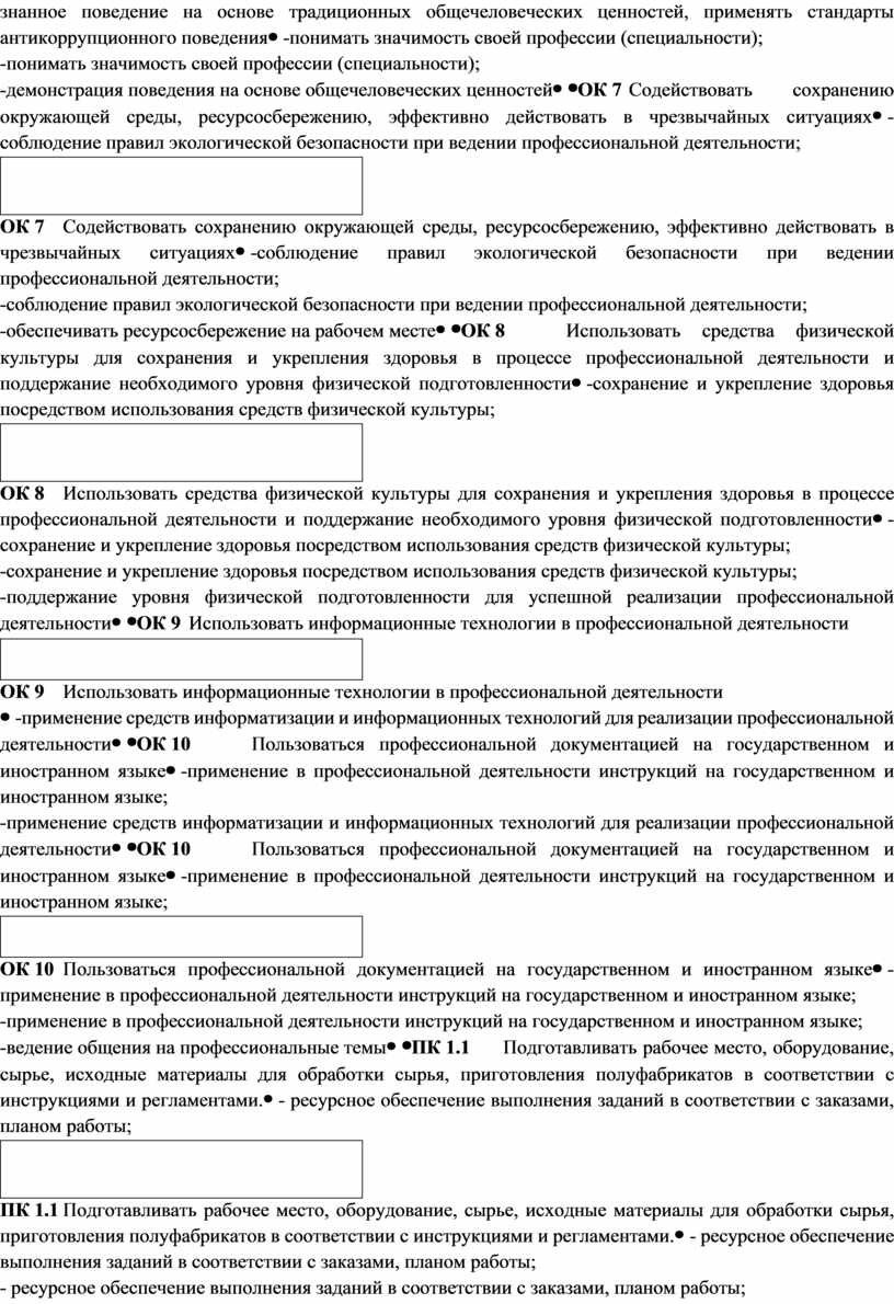 -использование актуальной нормативно-правовой документацию по профессии (специальности); -применение современной научной профессиональной терминологии; -определение траектории профессионального развития и самообразования |