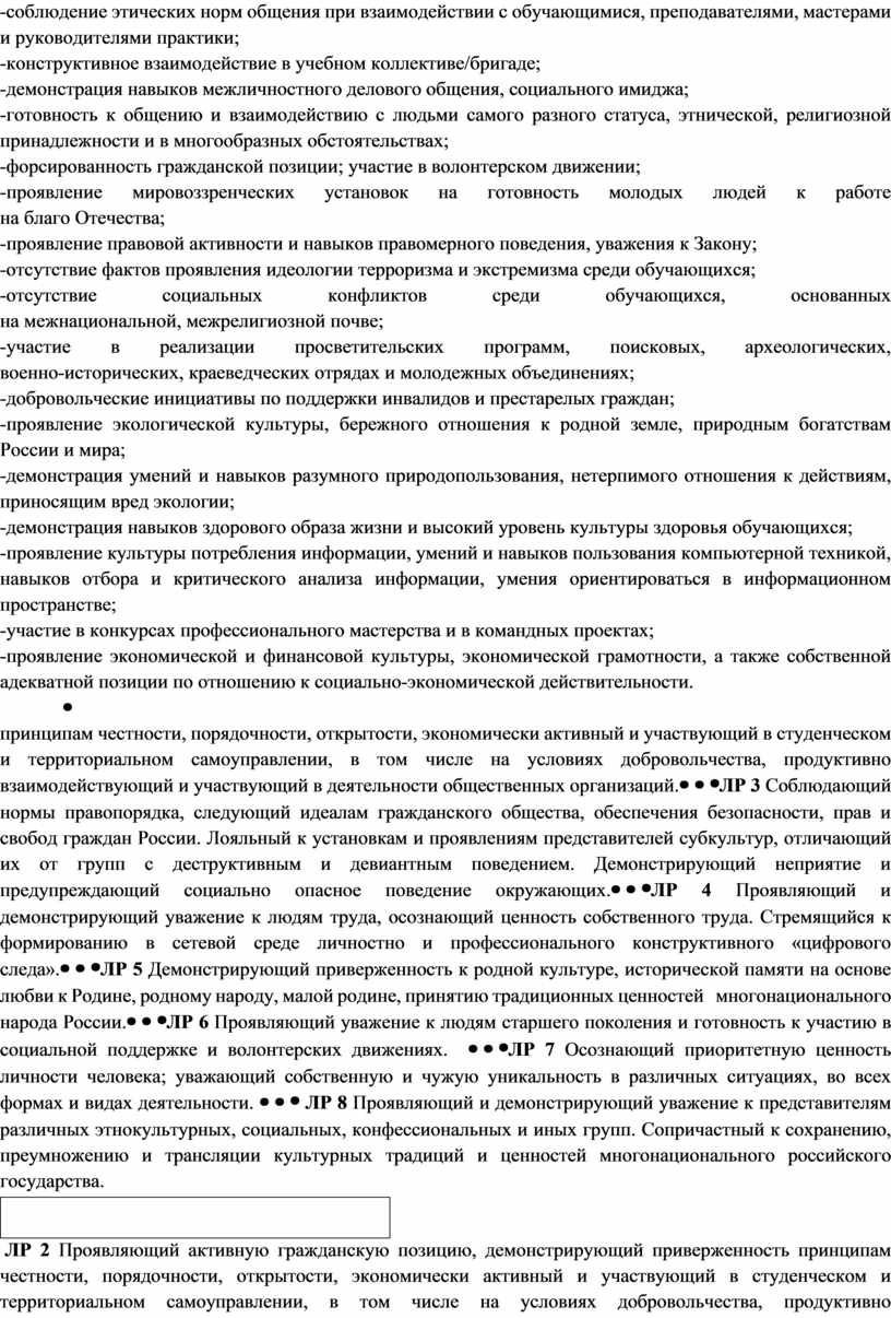 ЛР 2 Проявляющий активную гражданскую позицию, демонстрирующий приверженность принципам честности, порядочности, открытости, экономически активный и участвующий в студенческом и территориальном самоуправлении, в том числе на условиях добровольчества, продуктивно взаимодействующий и участвующий в деятельности общественных организаций. |