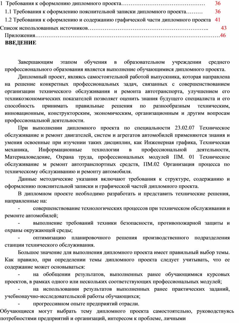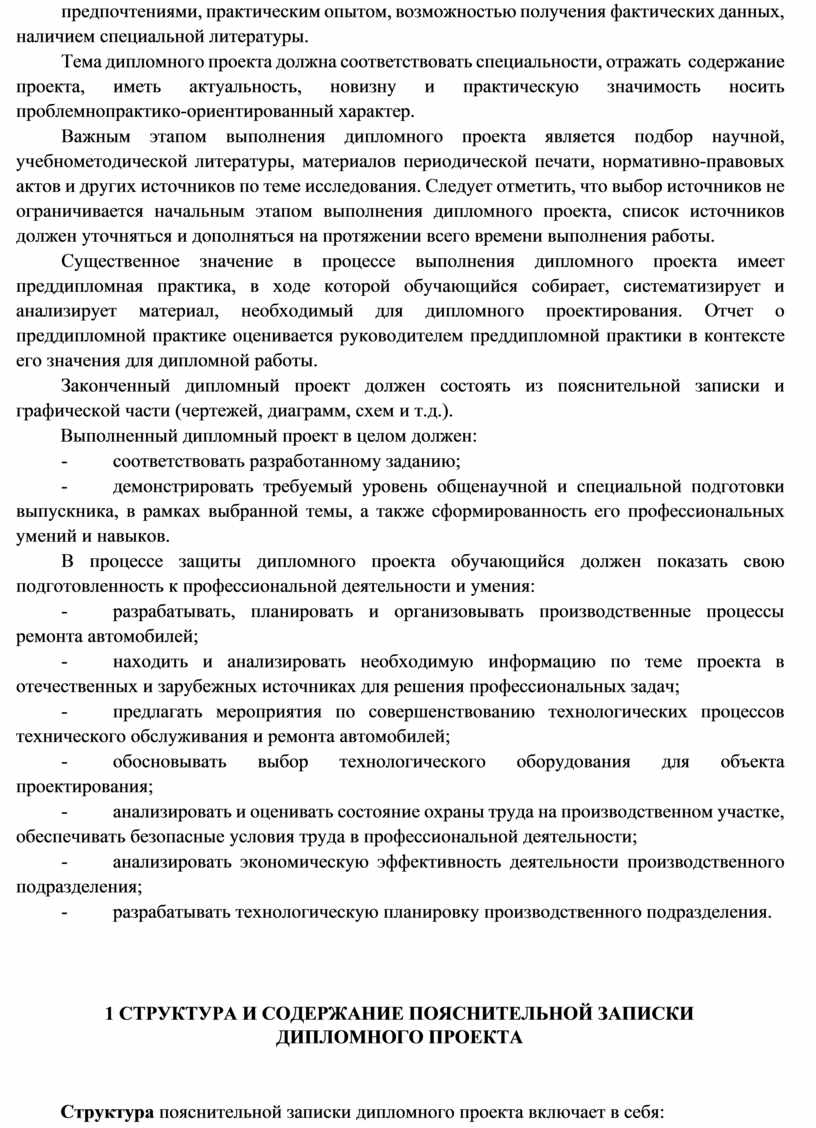 Данные методические указания включают требования к структуре, содержанию и оформлению пояснительной записки и графической частей дипломного проекта.