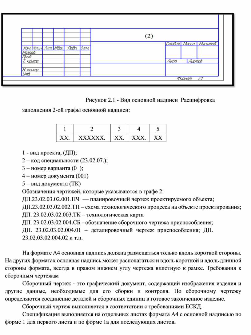 Рисунок 2.1 - Вид основной надписи Расшифровка заполнения 2-ой графы основной надписи: