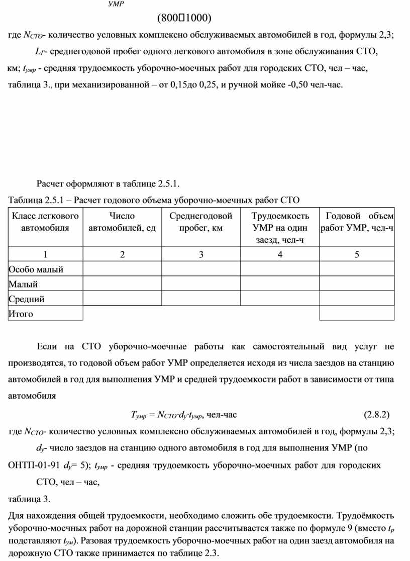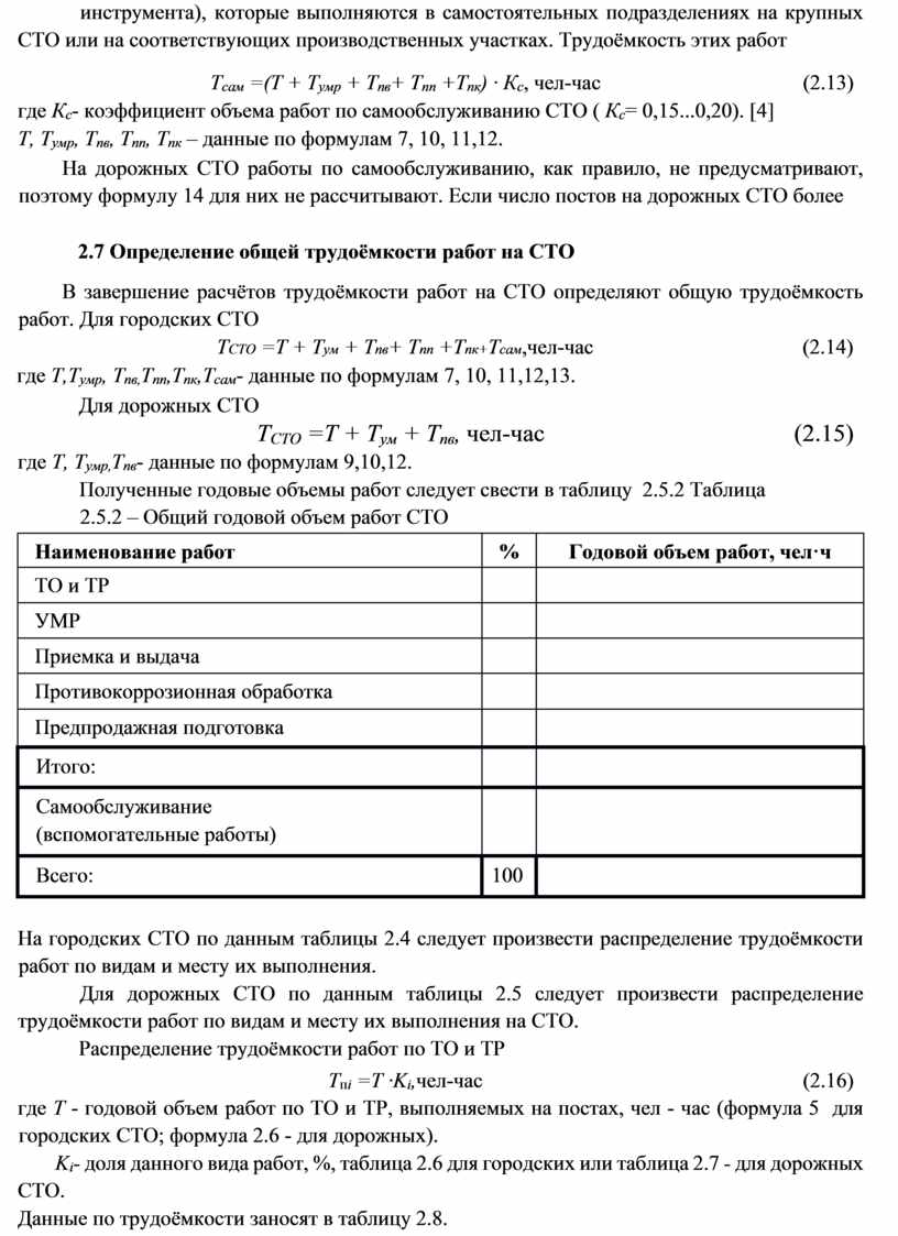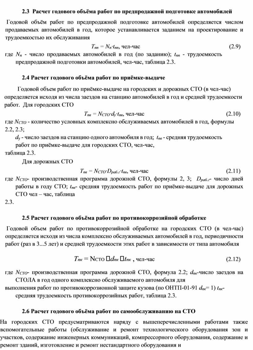 - Расчет годового объёма работ по самообслуживанию на СТО