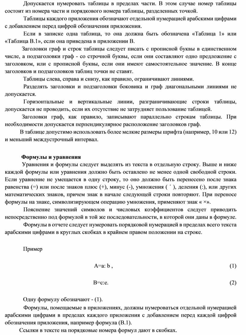 Формулы в отчете следует нумеровать порядковой нумерацией в пределах всего текста арабскими цифрами в круглых скобках в крайнем правом положении на строке.