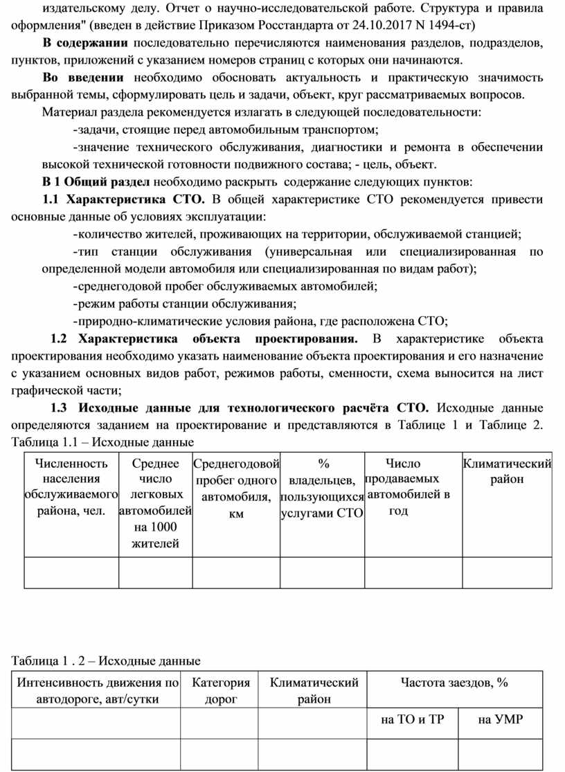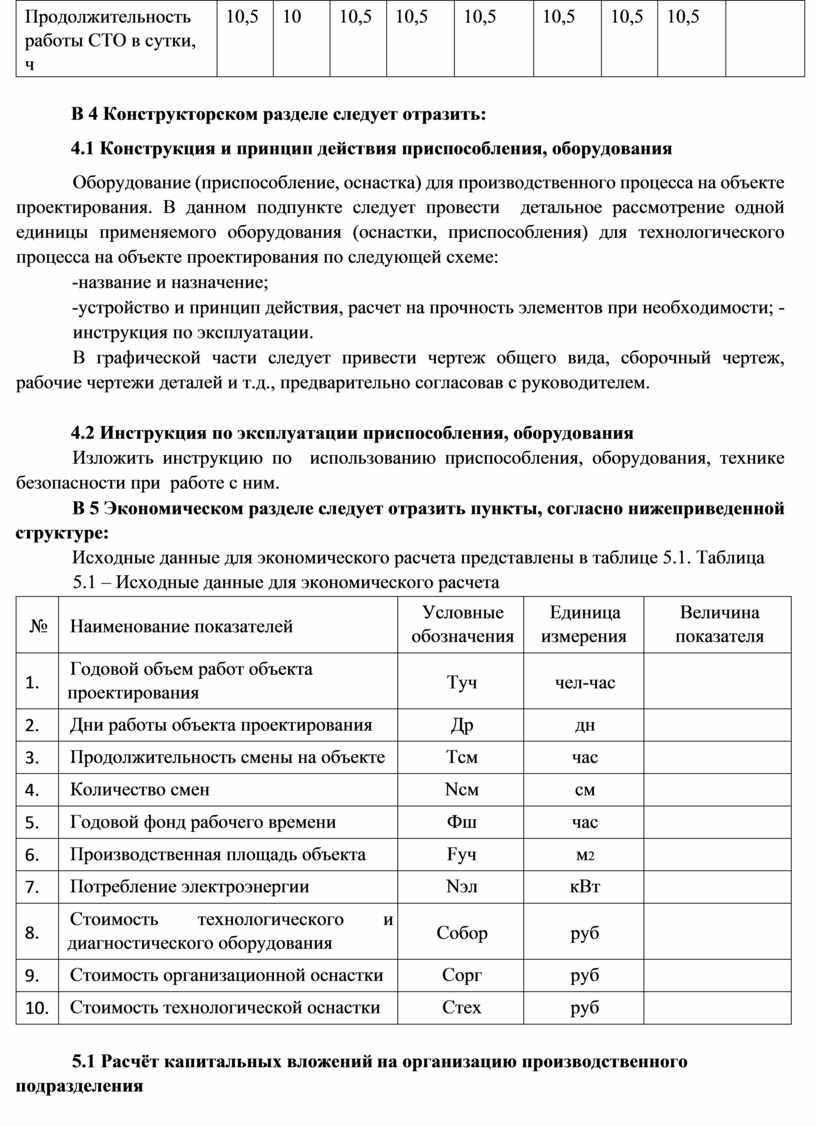 - Исходные данные для технологического расчёта СТО;