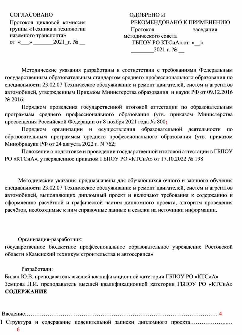 РЕКОМЕНДОВАНО К ПРИМЕНЕНИЮ Протокол заседания методического совета ГБПОУ РО КТСиА» от «__» ________2021 г. № __ |