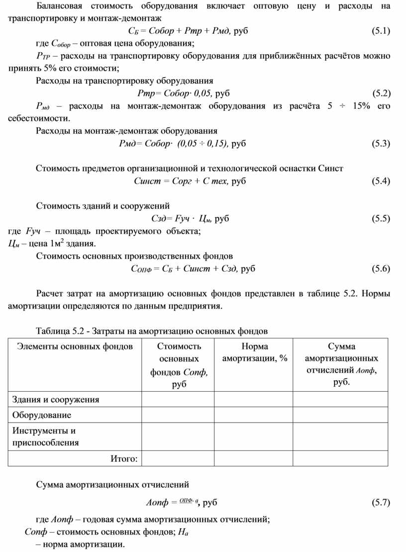 - Расчёт капитальных вложений на организацию производственного подразделения